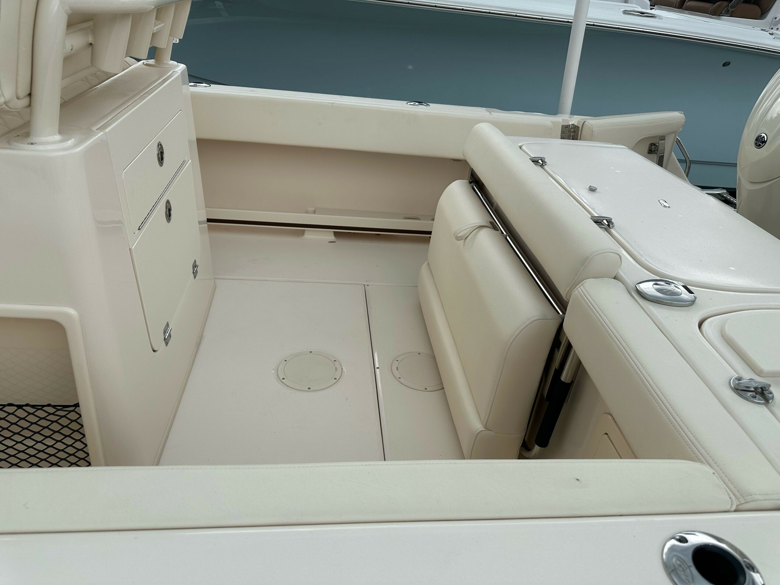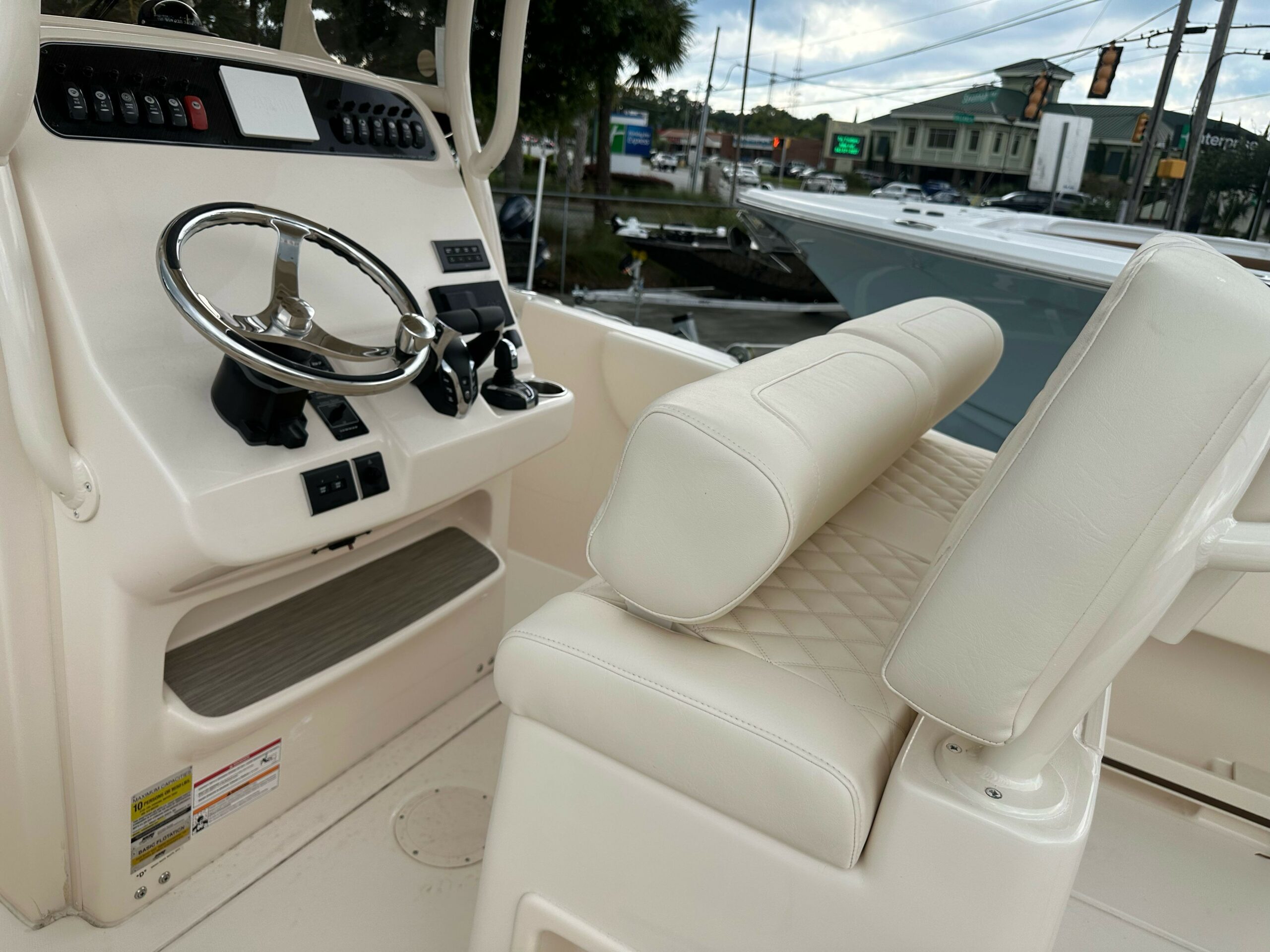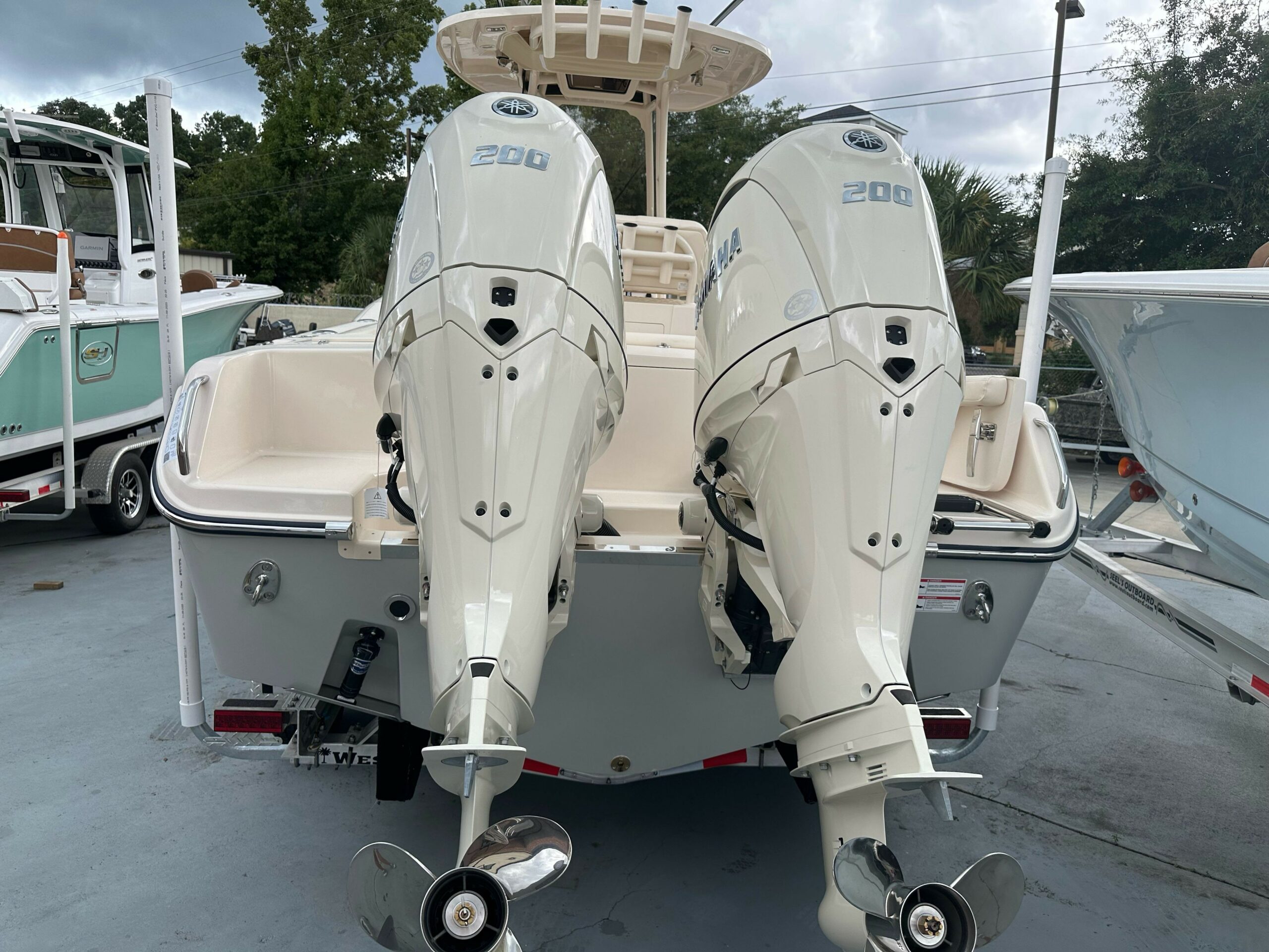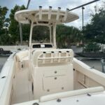Safety 2 Automatic Bilge Pumps (Total 2600 GPH) (9842 LPH) Basic Flotation Bow Grab Rail – Low Profile 316 Grade Stainless Steel Cockpit toe Rails Composite Stringer System & Transom – Water Impervious Nonskid Fiberglass Liner Self-Bailing Cockpit w/Cockpit Drains (4) Stainless Steel Through-Hull Fittings Cockpit & Deck 100% Hand Laid Seav Hull & Deck Anchor Windlass w/Rode, Line, and Bow Roller Batteries (2) w/Battery Select Switches (one per Engine) Cleats Cockpit Bolsters Cockpit Freshwater Shower (Recessed) Cockpit Lights – Blue LED Cutting Board Hydraulic Trim Tabs w/Indicator & Retractor Integrated Outboard Mounting System w/Swim Platform & Ladder International Lighting Livewell – 32-Gallon (121.1 l) Aft Insulated raw Water Livewell w/Light, Full Column Distribution Inlet & ob Drain (1100 GPH Pump) (4164 LPH) Rod Holders – Cockpit (4) Rod Storage Racks – Horizontal (6) Deck Hardware – 316 Grade Stainless Steel Through-Bolted Drink Holders – Stainless Steel (3) Engine Flush System w/Hose Attachment Aft (one per Engine) Factory Engine pre-Rigging Fish box – 120-qt. (113.6 l) Forward Port Divided Insulated Fish box w/ob Drain Fish box – 120-qt. (113.6 l) Forward Starboard Insulated Fish box w/ob Drain Fish box – 185-qt. (175.1 l) Aft Insulated Fish box w/ob Drain Forward Bolsters Rubrail – High Density PVC w/Stainless Steel Insert Seating – Lean Bar w/Backrest, Split Flip-up Bolster, Knife & Plier Holders, Tackle Trays, Lockable Storage & Rod Holders (4) Seating – Foldaway Aft Bench Seat w/Cushion Seating – Port & Starboard Cushioned Bow Seating w/Forward Facing Foldaway Bolstered Backrest (2) Stereo System w/Waterproof Touch Screen Display, AM/FM Tuner & Wi-Fi & Bluetooth Connectivity; Speakers w/LED Lights – Bow (2), Helm (2) Stern Eyes – 316 Grade Stainless Steel Storage – Forward Anchor Locker w/Rode Storage Transom Door – Fiberglass Washdown – Pressurized raw Water w/Hose Water Tank – 20-Gallon (75.7 l) Freshwater Console Accessory Outlet – 5V Duplex USB Port Compass Drink Holders – Stainless Steel (2