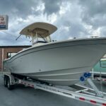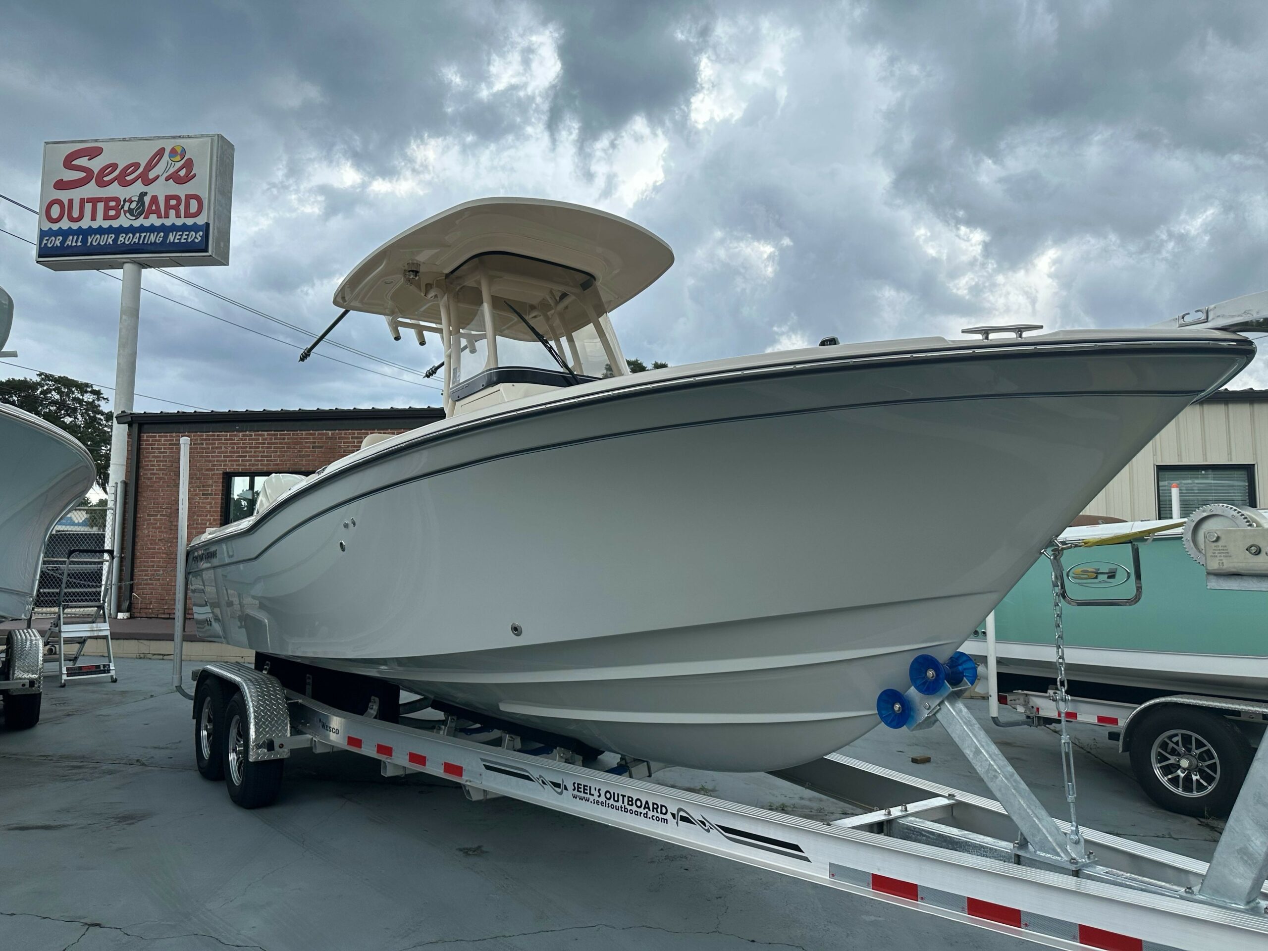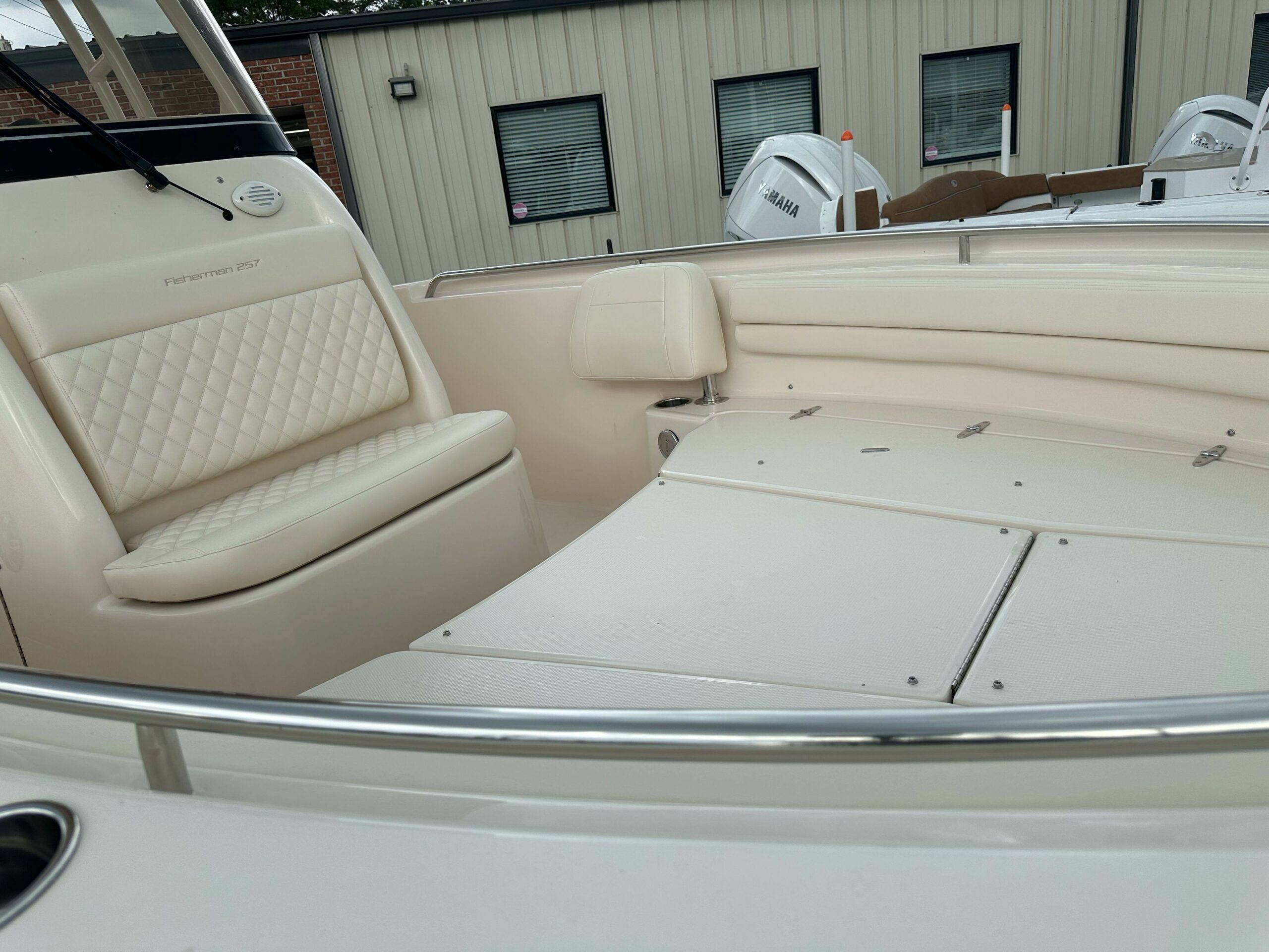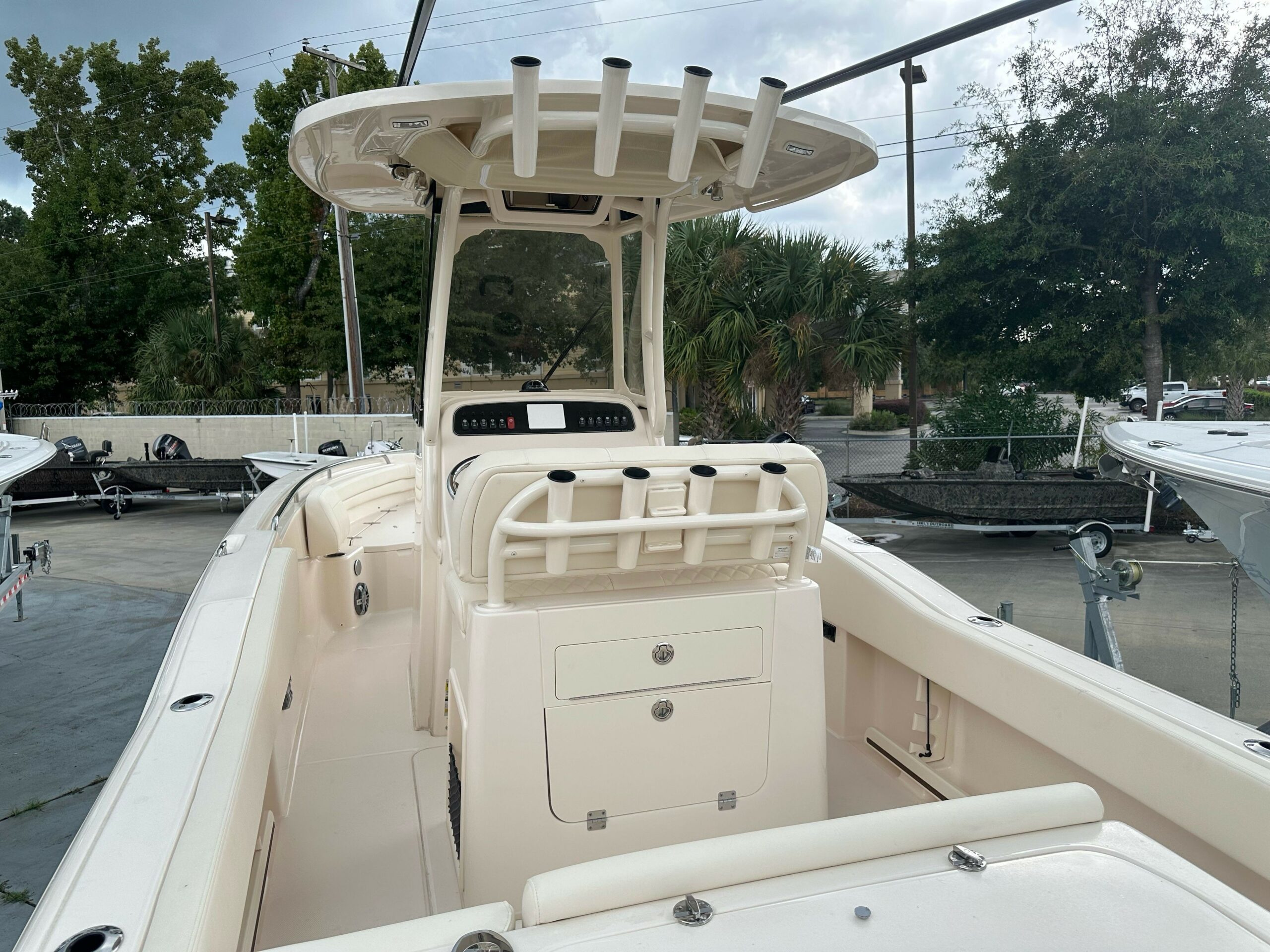 Safety 2 Automatic Bilge Pumps (Total 2600 GPH) (9842 LPH) Basic Flotation Bow Grab Rail – Low Profile 316 Grade Stainless Steel Cockpit toe Rails Composite Stringer System & Transom – Water Impervious Nonskid Fiberglass Liner Self-Bailing Cockpit w/Cockpit Drains (4) Stainless Steel Through-Hull Fittings Cockpit & Deck 100% Hand Laid Seav Hull & Deck Anchor Windlass w/Rode, Line, and Bow Roller Batteries (2) w/Battery Select Switches (one per Engine) Cleats Cockpit Bolsters Cockpit Freshwater Shower (Recessed) Cockpit Lights – Blue LED Cutting Board Hydraulic Trim Tabs w/Indicator & Retractor Integrated Outboard Mounting System w/Swim Platform & Ladder International Lighting Livewell – 32-Gallon (121.1 l) Aft Insulated raw Water Livewell w/Light, Full Column Distribution Inlet & ob Drain (1100 GPH Pump) (4164 LPH) Rod Holders – Cockpit (4) Rod Storage Racks – Horizontal (6) Deck Hardware – 316 Grade Stainless Steel Through-Bolted Drink Holders – Stainless Steel (3) Engine Flush System w/Hose Attachment Aft (one per Engine) Factory Engine pre-Rigging Fish box – 120-qt. (113.6 l) Forward Port Divided Insulated Fish box w/ob Drain Fish box – 120-qt. (113.6 l) Forward Starboard Insulated Fish box w/ob Drain Fish box – 185-qt. (175.1 l) Aft Insulated Fish box w/ob Drain Forward Bolsters Rubrail – High Density PVC w/Stainless Steel Insert Seating – Lean Bar w/Backrest, Split Flip-up Bolster, Knife & Plier Holders, Tackle Trays, Lockable Storage & Rod Holders (4) Seating – Foldaway Aft Bench Seat w/Cushion Seating – Port & Starboard Cushioned Bow Seating w/Forward Facing Foldaway Bolstered Backrest (2) Stereo System w/Waterproof Touch Screen Display, AM/FM Tuner & Wi-Fi & Bluetooth Connectivity; Speakers w/LED Lights – Bow (2), Helm (2) Stern Eyes – 316 Grade Stainless Steel Storage – Forward Anchor Locker w/Rode Storage Transom Door – Fiberglass Washdown – Pressurized raw Water w/Hose Water Tank – 20-Gallon (75.7 l) Freshwater Console Accessory Outlet – 5V Duplex USB Port Compass Drink Holders – Stainless Steel (2