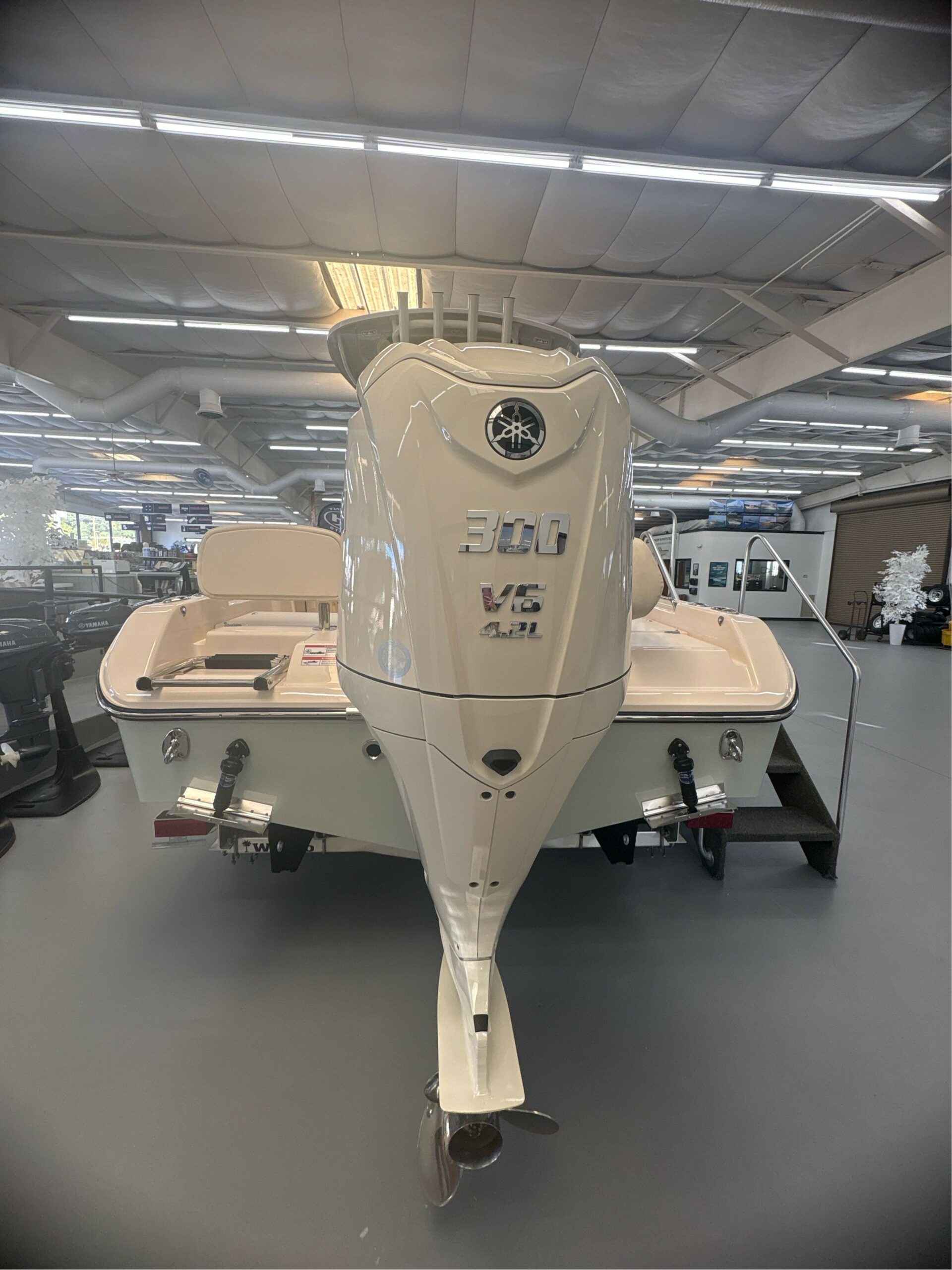 Fish box – 277-qt. (262.1 l) Forward Insulated Fish box w/Overboard Drain Hydraulic Trim Tabs w/Indicator & Retractor International Lighting Ladder – Aft Swim Ladder