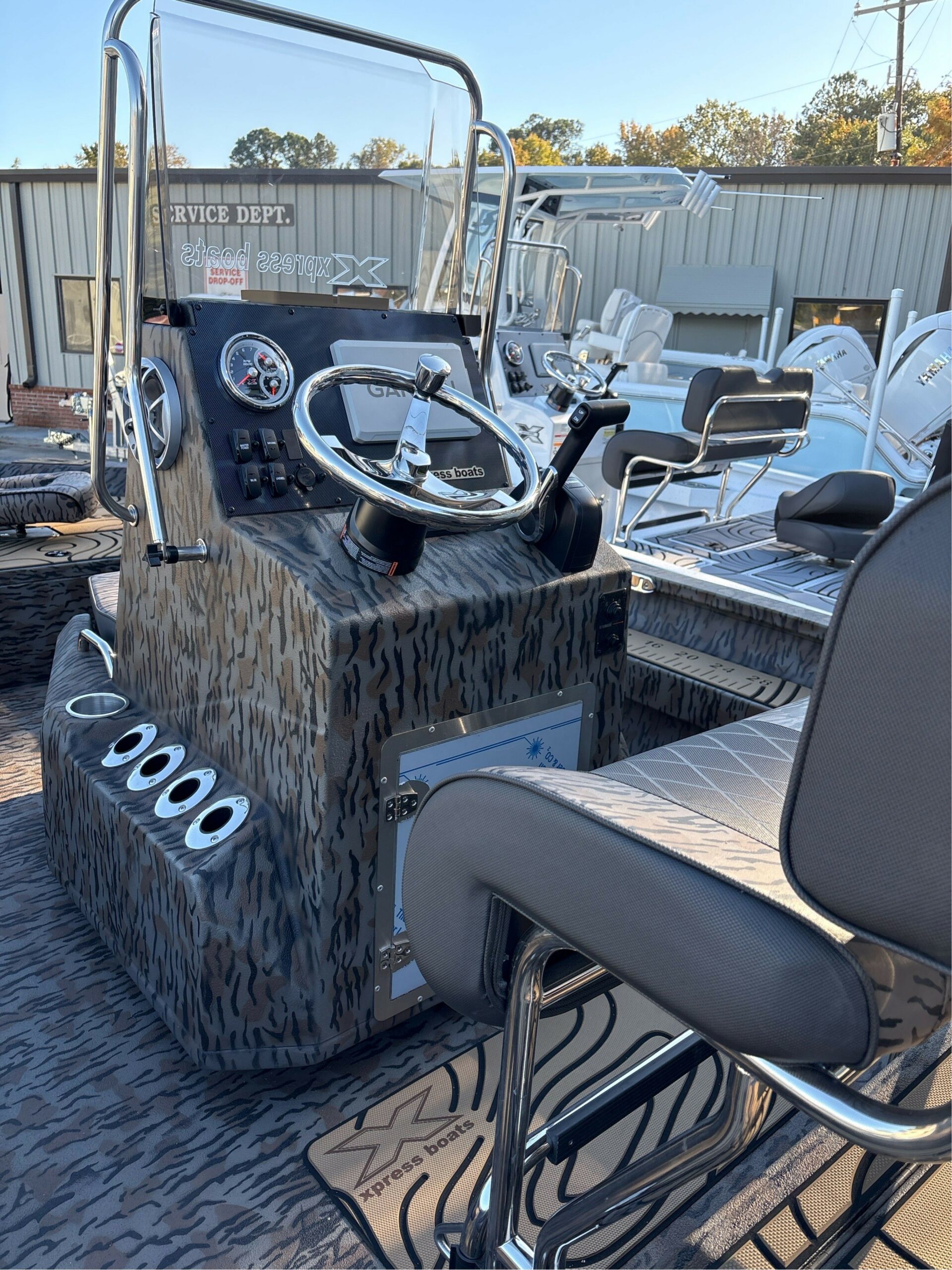 XTREME BAY STAINLESS PACKAGE-STEERING WHEEL, 6 FOLD DOWN DECK CLEATS, ROD HOLDERS, CUP HOLDERS